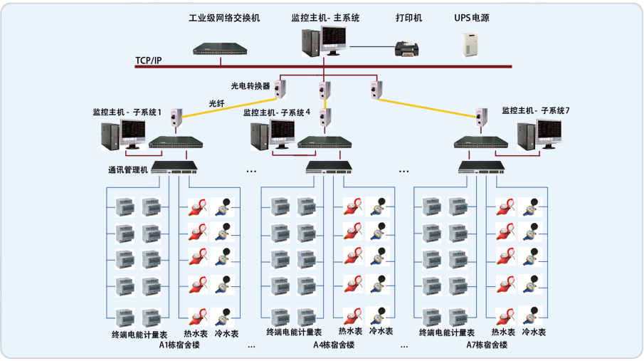 ÖØÇì¹ã´ïÉúÑÄ·þÎñÇøÄܺļà²âϵͳ½ÓÄÉÍøÂçÂþÑÜʽ½á¹¹£¬£¬£¬£¬£¬Õû¸öϵͳ°üÀ¨¸ÃÐÞ½¨ÈºµÄÆß¸ö×ÓϵͳºÍÖÐÐÄ¼à¿ØÊÒµÄÒ»¸ö×Ü¼à¿ØÏµÍ³¡£¡£¡£¡£¡£¡£¡£¡£Àä/ÈÈË®±íÊý¾ÝºÍµç±íÊý¾ÝÍâµØÊÕÂÞÍê³Éºó¼¯Öд«ÖÁÖÐÐÄ¼à¿ØÊÒ¡£¡£¡£¡£¡£¡£¡£¡£ ·Ö¿ØÖÐÐĺÍÖÐÐÄ¼à¿ØÊÒÖ®¼äÓùâÏËÍøÂç¾ÙÐÐͨѶ¡£¡£¡£¡£¡£¡£¡£¡£Ã¿¸ö×Óϵͳ½ÓÄÉÎą̊ͨѶ¹ÜÀí»ú£¬£¬£¬£¬£¬ÆäÖÐÈý̨ͨѶ¹ÜÀí»úÊÕÂÞÂ¥ÄÚÿ»§µÄÀä/ÈÈË®±íÊý¾Ý£¬£¬£¬£¬£¬ÁíÍâÁ½Ì¨ÊÕÂÞÂ¥ÄÚµç±íµÄÊý¾Ý¡£¡£¡£¡£¡£¡£¡£¡£